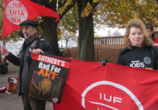 Also on May 31, the Teamsters reached an agreement to end the bitter 10-month lockout of union workers at the New York operation of international auction house Sotheby's. The 3-year agreement maintains benefits, increases wages, and preserves union jobs. Unions around the world picketed Sotheby's in support of the locked out workers, including a spirited picket by the IUF, ICEM and UNI and the Geneva branch of the Swiss union UNIA, at a Sotheby's auction in Geneva last November. The conflict also drew strong support from the New York City Occupy movement.
